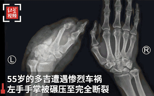 手术病人是一名55岁的男子,他遭遇车祸,手掌被切断。当时,患者左手的左手掌被压碎至完全破裂,大量软组织受损。由于当地医疗条件有限,在对患者进行初步救治后,当地医院使用疫苗冷链箱存放截肢,将患者及截肢转移至四川省骨科急诊科人民医院救治。