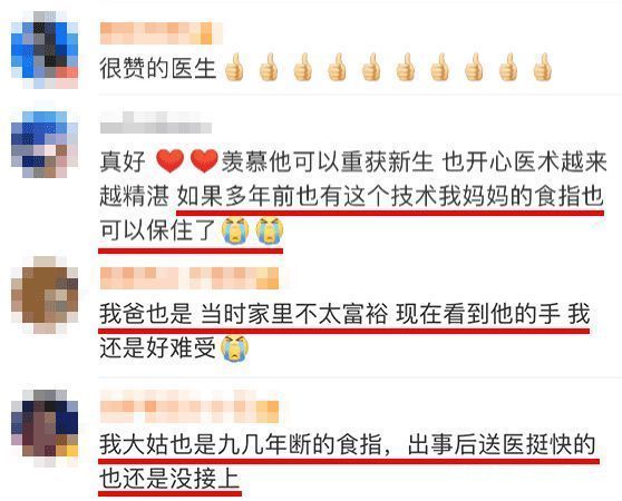 在这条新闻的微博中,除了感叹医生精湛的医术,也有网友表示遗憾已经断肢的家庭成员。