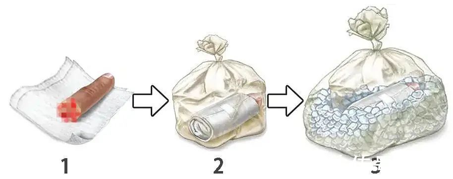 将装有断肢的密封塑料袋放入保温容器中,塑料袋外放一些冰块(也可以用不加冰的冰淇淋或冰棒)立方体)代替冷藏产品)。
