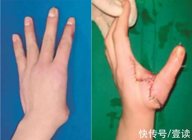 因此,当拇指缺失时,可以将健康的无名指和小指移植到大拇指保证最大手功能发挥。 手指位移重建拇指外观理想,功能性好,但会失去一个正常的手指。